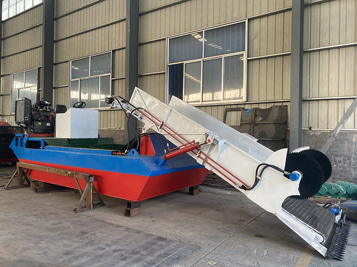 1. কাজ করার সময়, জলবাহী সিস্টেম জলবাহী সিলিন্ডার নিয়ন্ত্রণ করে সামনের সংগ্রহের ক্যাবিনটি নীচে নামিয়ে পানিতে যেতে;তারপর নিচের শেয়ার যা কেবিন সামনে কাজ শুরু যে জলবাহী মোটর দ্বারা চালিত. এর প্রধান ফাংশন জল ঘাসের শিকড় কাটা হয়. সংগ্রহের কেবিন উভয় পক্ষের 2 বৃত্তাকার কাটা ব্লেড আছে,যা হাইড্রোলিক মোটরের ড্রাইভের অধীনে দ্রুত ঘোরে যাতে অনুভূমিকভাবে বেড়ে ওঠা জলের ঘাস কেটে ফেলা যায়.