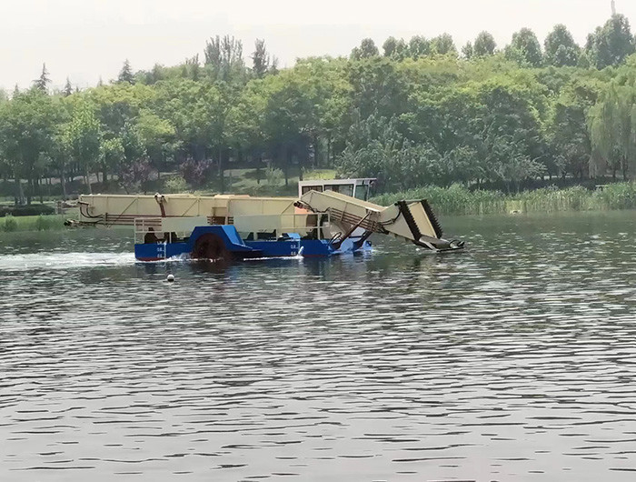কাটার নৌকা একটি আধুনিক জলজ উদ্ভিদ এবং জল hyacinth ফসল ও পরিবহন সরঞ্জাম উপযুক্ত